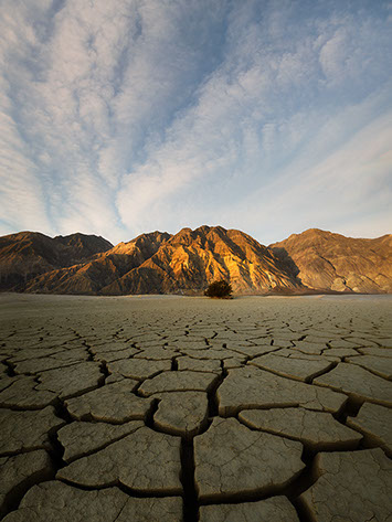 The colors and textures in this distant valley tell a story of the affects of human and natural forces on the Panamint Range on the western flank of Death Valley.