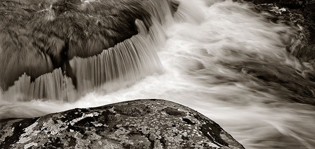 An intimate view of the juxtaposition of smooth water and rough rock.