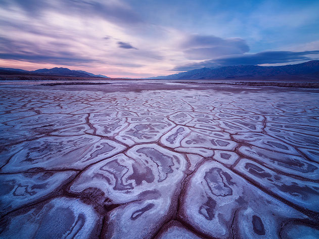 Geometry is the name of the game sometimes in Cottonball Basin, where evaporation can leave patterns of salt that last for decades or weeks depending on the weather conditions.