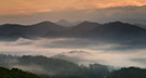 A delicate layer of fog welcomes the rising sun during the peak of autumn colors along Foothills Parkway.