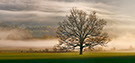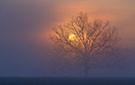 Fog, sun, and the silhouette of a perfect tree creates a light show that almosts pulsates with life.