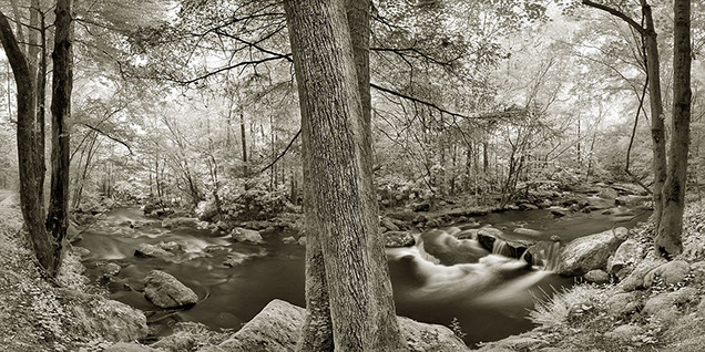 This is an infrared image taken along the Middle Prong of the Little River. It is a near 180 degree panorama created from multiple images. The water is very low in this image and the stream seemed to be starving for rain.